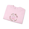 A soft, cozy crewneck sweatshirt with a gentle, botanical design that reads “Love grows here.” The light, nature-inspired wreath of blooms and leaves sits subtly on the chest, giving the sweatshirt a quiet, homey charm. Built from a medium-heavy 50/50 cotton–poly blend, it feels warm without being bulky and holds its shape thanks to ribbed collar and double-needle stitching. Lightweight enough for layering and tailored with a classic fit, this sweatshirt slips into slow mornings with coffee, plant care sessions, or relaxed gatherings. The muted palette and delicate embroidery/print make it feel thoughtfully handmade — like a wearable reminder of home and small, intentional moments.